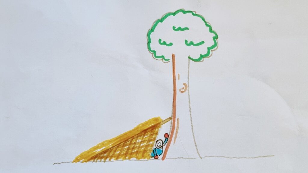 - Man kan lave dem i tipi form, eller man kan lave dem som et primitivt shelter, hvor man stiller en lang gren op af et træ, og så lægger man kortere pinde op som et skråt tag