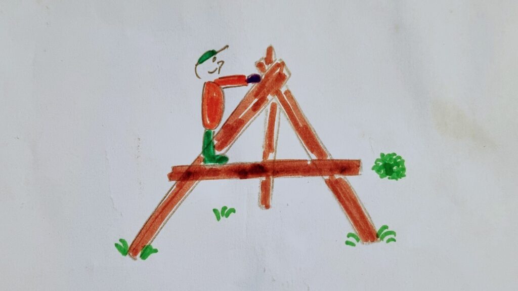 - Hvis I ikke har rafter derhjemme, kan I måske finde nogle tykke pinde i skoven